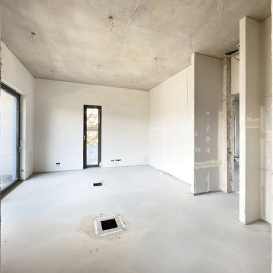 Structure avec isolation, menuiseries, raccordements et finitions intérieures complètes (enduit et peinture).