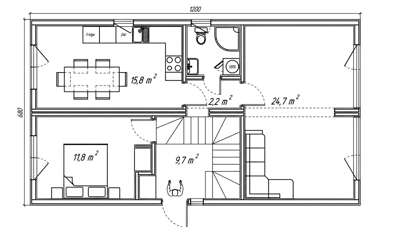 | Dimensions extérieures | 12 x 6.8 x 7.2 m (L x l x H) |