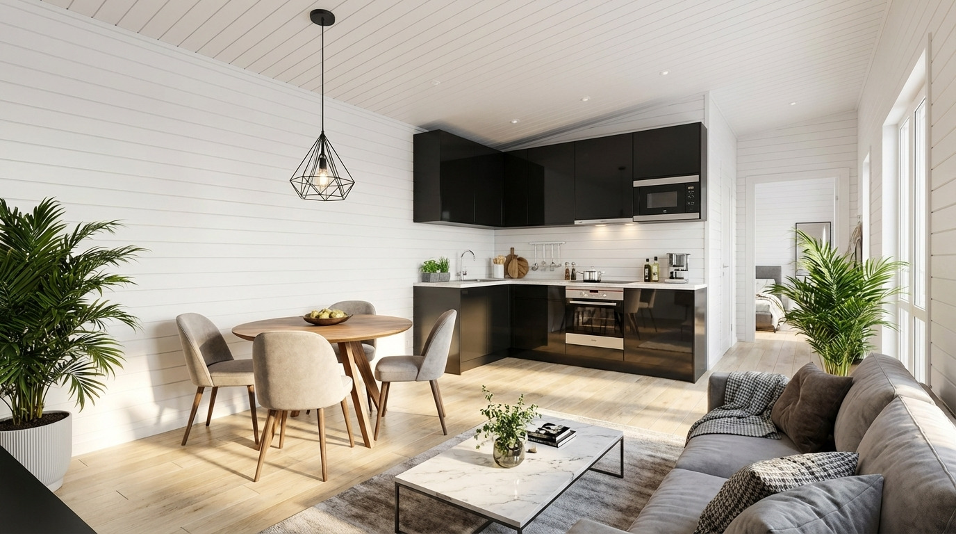 | Façade extérieure | Combinaison d’épicéa scandinave et panneaux composites |