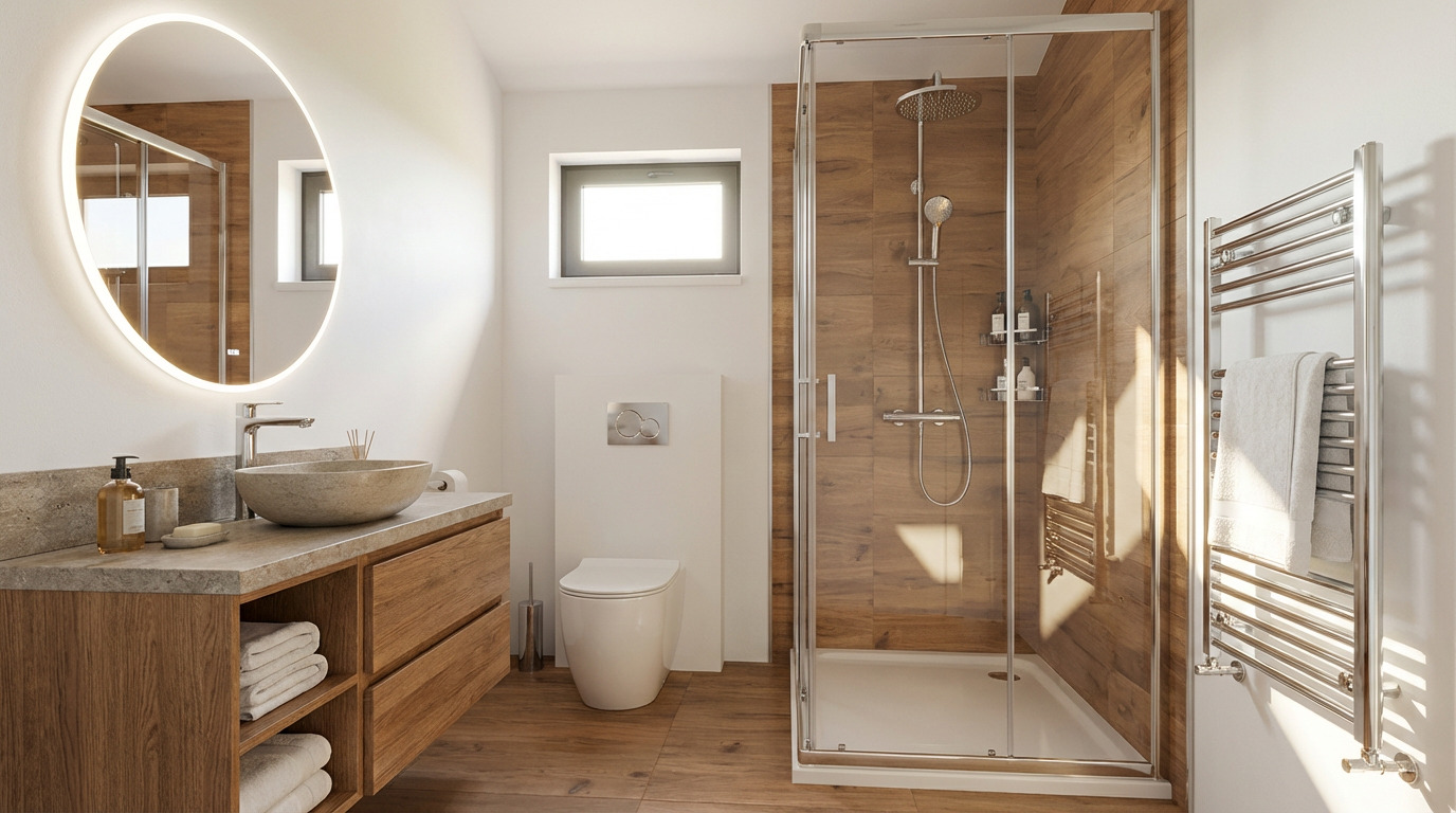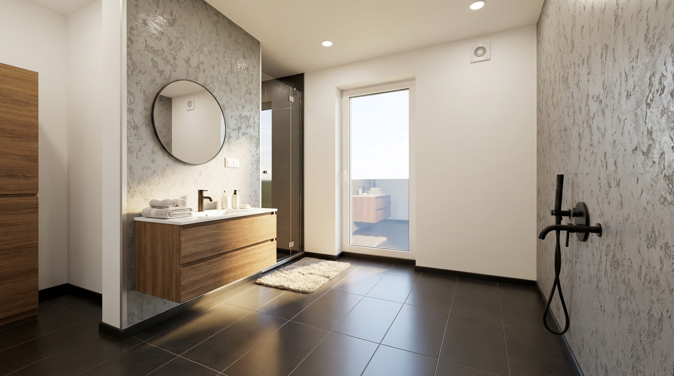 | Sanitaires | Cabine de douche 90×90, WC suspendu (bâti-support encastré) |