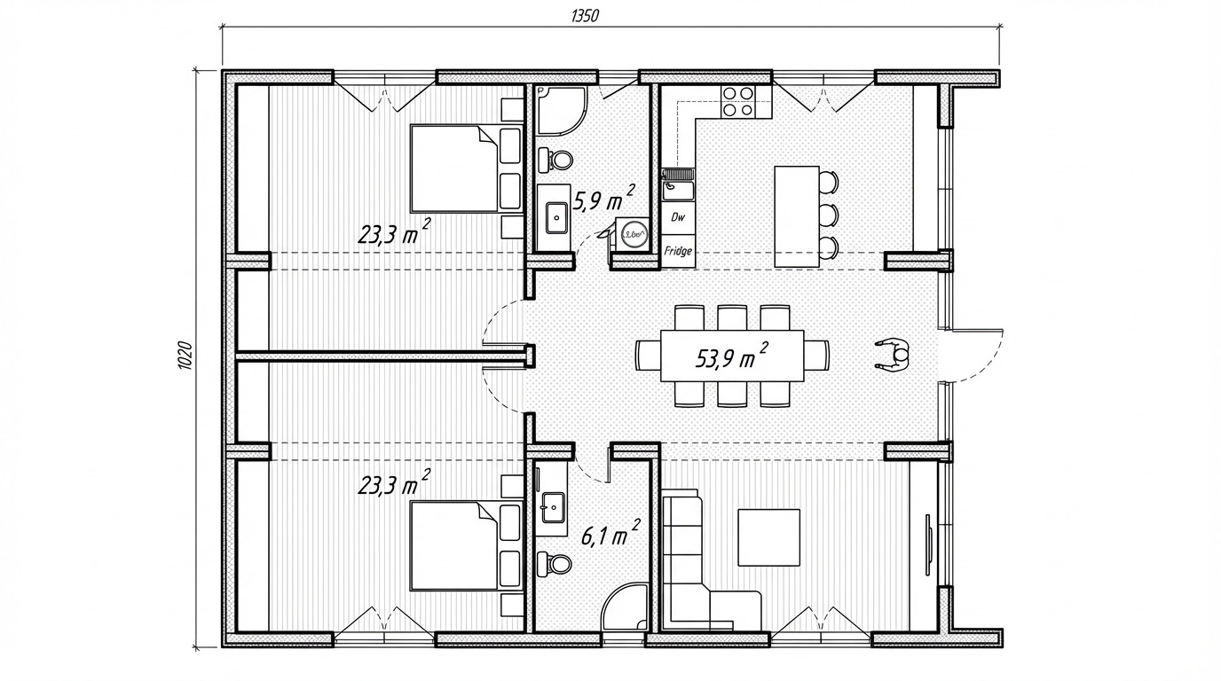 | Dimensions extérieures | 13.5 x 10.2 x 3.5 m (L x l x H) |