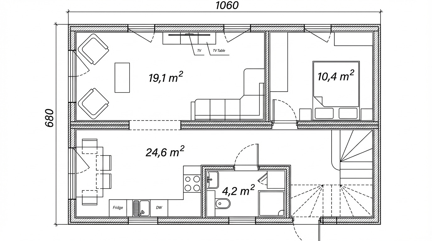 | Eau & Assainissement | Installation réseaux incluse (lavabo, machine à laver, évier) |