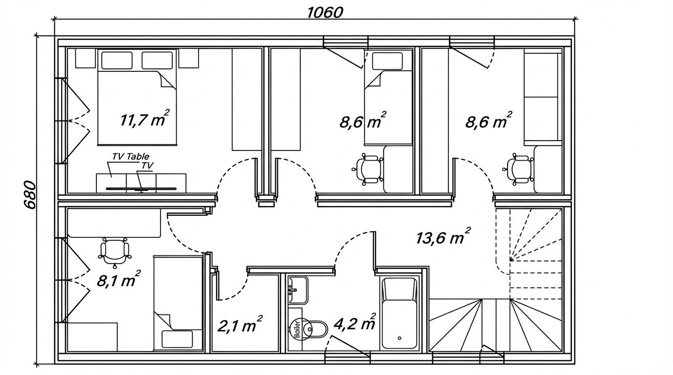 | Dimensions extérieures | 10.6 x 6.8 x 6.6 m (L x l x H) |