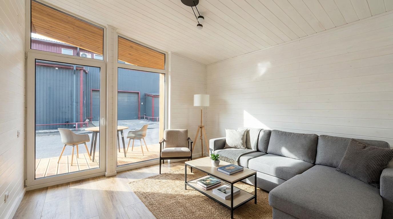| Façade extérieure | Combinaison de profil trapézoïdal et d’épicéa scandinave |